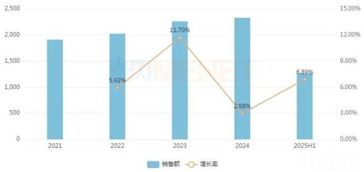 在创新药及生物类似药拉动下,近年来中国三大终端六大市场(统计范围详见本文末)生物药销售额逐年攀升,2022年首度突破2000亿元,2024年拿下创新高的超2300亿元;2025H1继续以6.89%的增速保持增长,从大类销售额格局上看,抗肿瘤和免疫调节剂遥遥领先,市场份额超过45%。