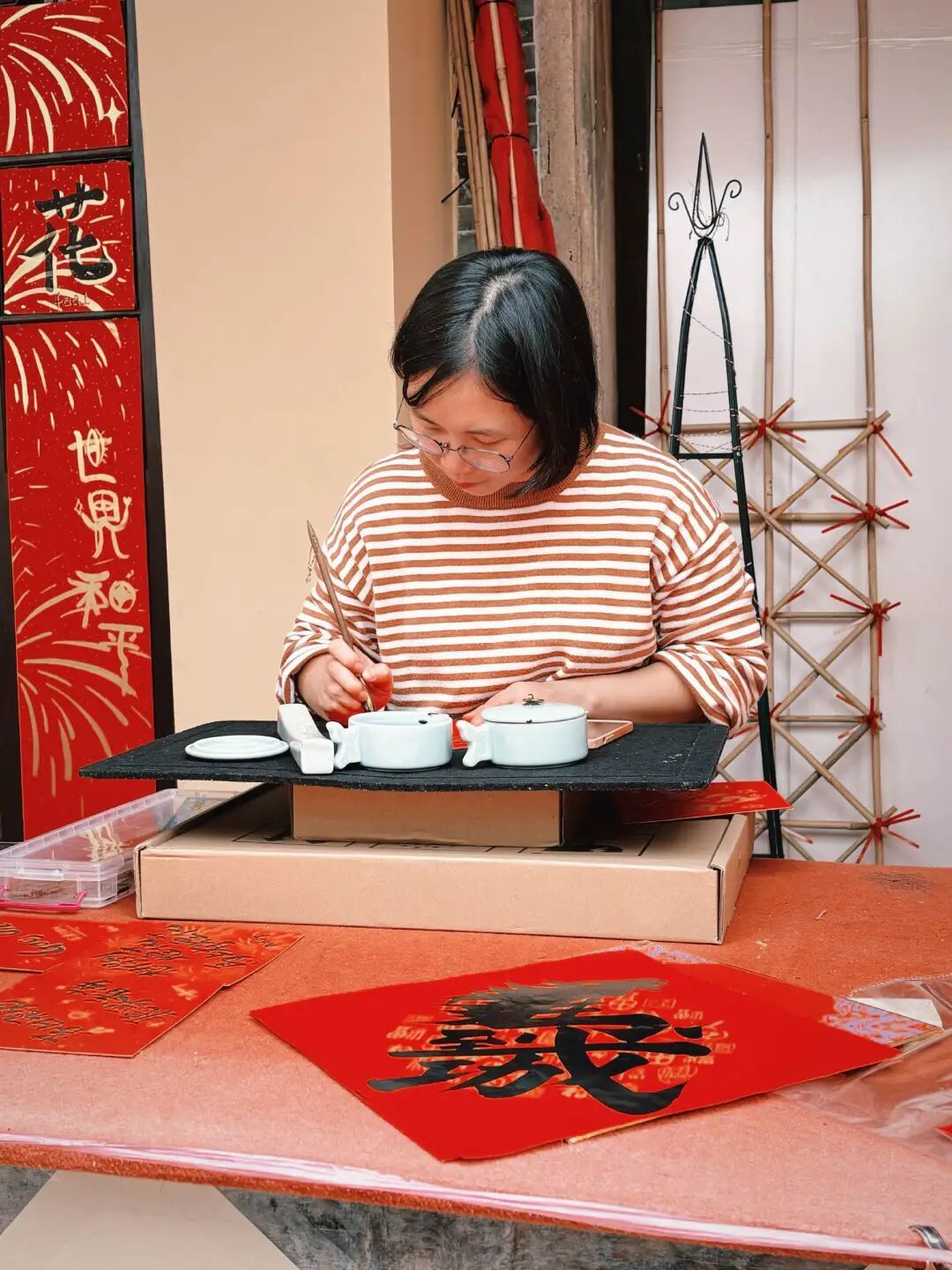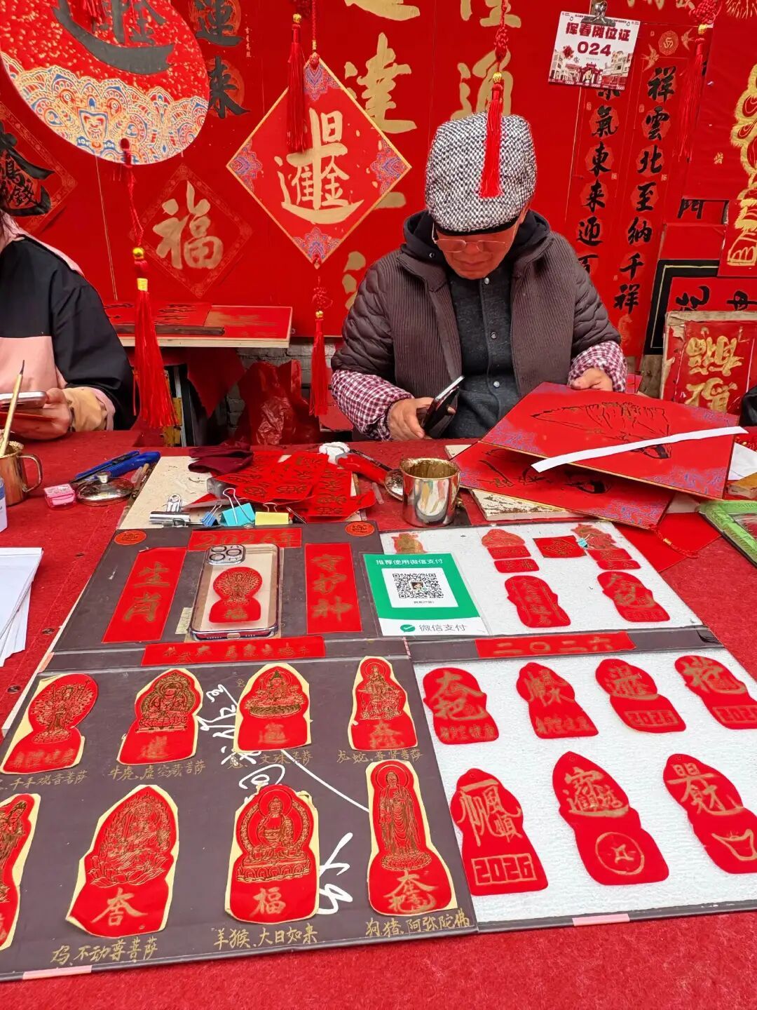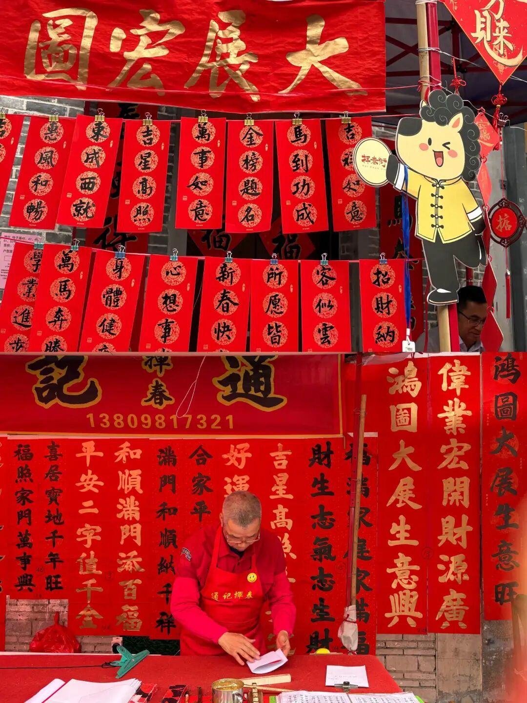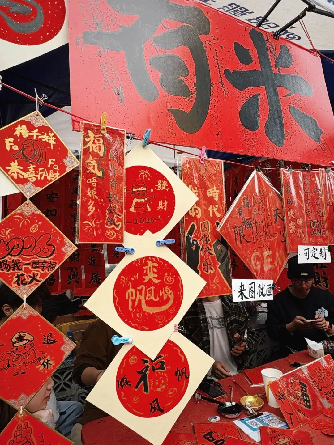 看中哪位师傅的字,不妨静静站在旁边欣赏一会儿。写完春联,不必急着拿走,等墨迹自然干透,这份带着音乐记忆的祝福,会格外珍贵。