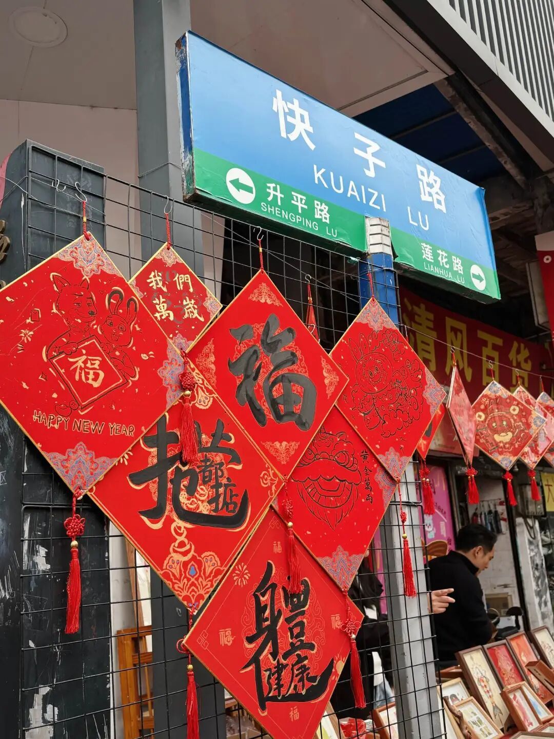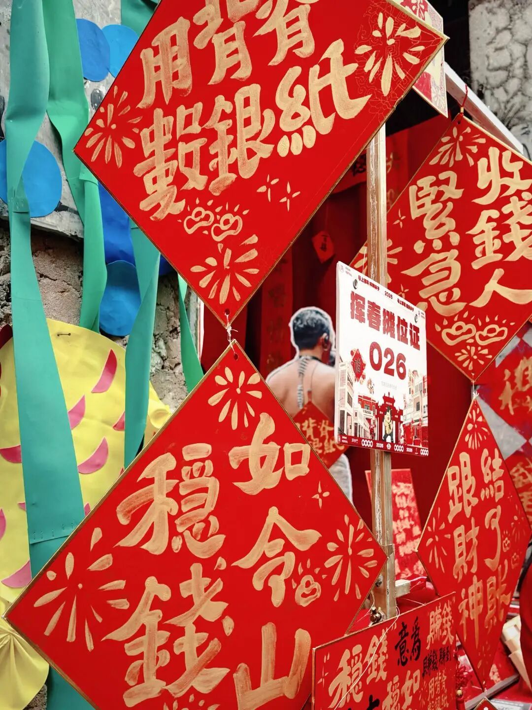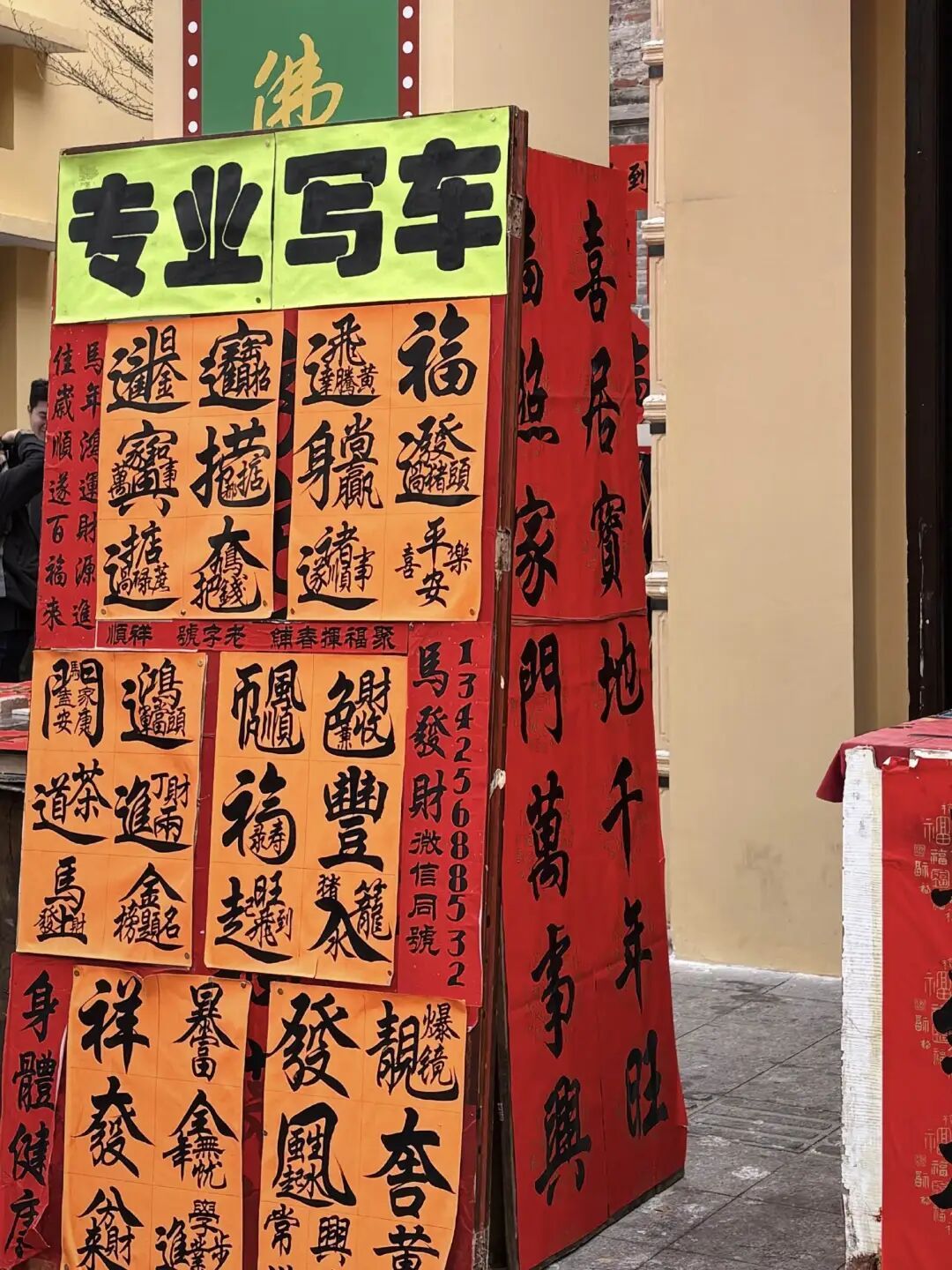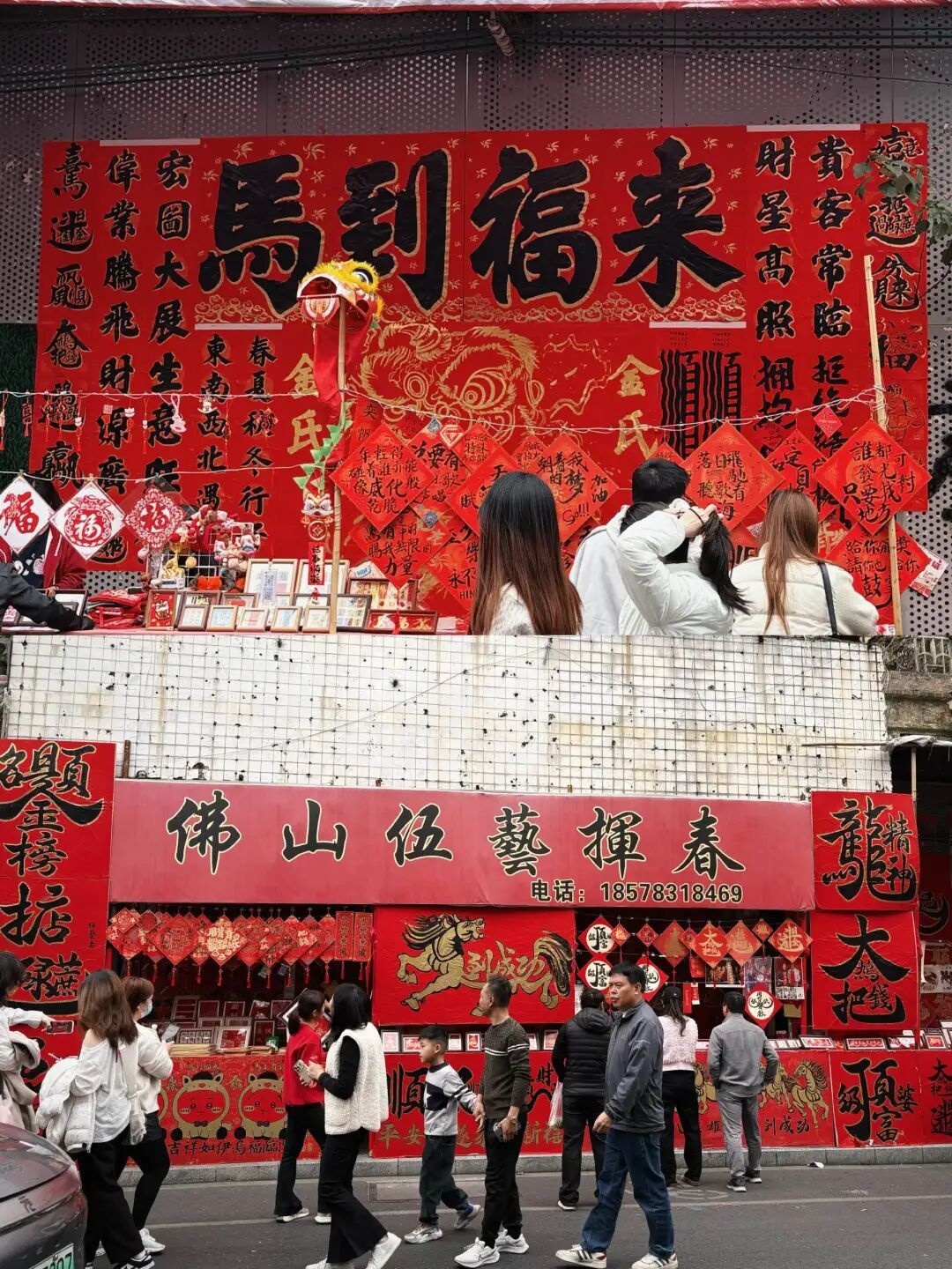 想看最有墨香的年味?坐广佛线到佛山的快子路(年轻人爱叫它“挥春街”)吧。数十位老师傅当街摆案,即席挥毫。这里的神奇之处在于,一切美好的词句都能“入联”。
