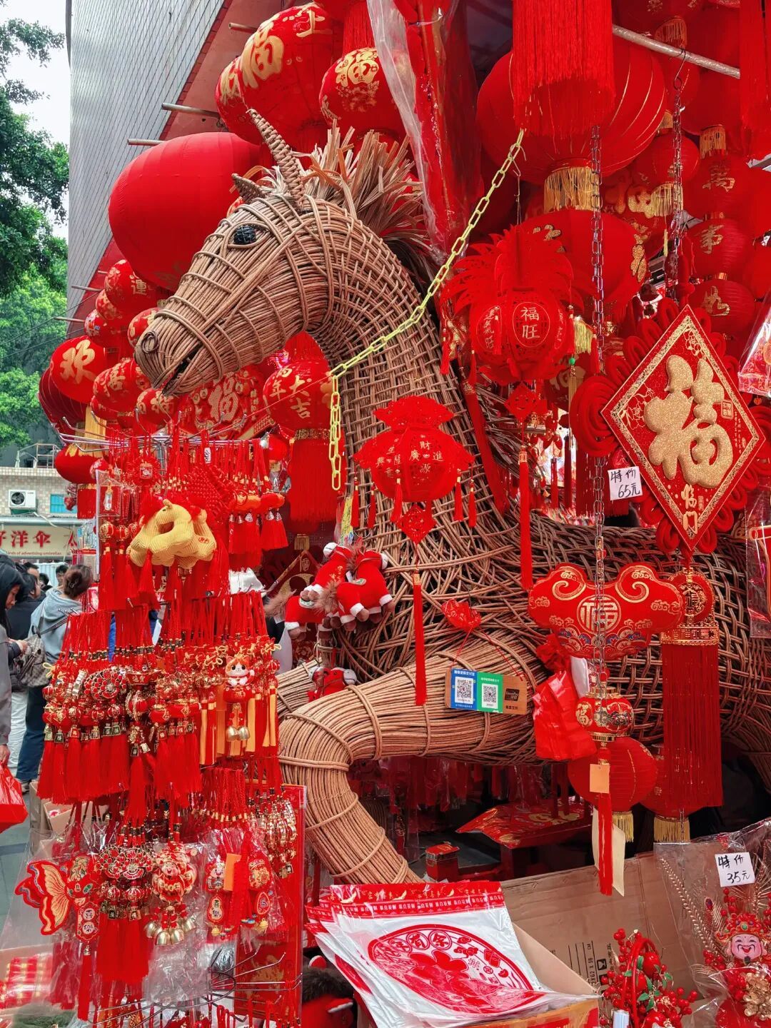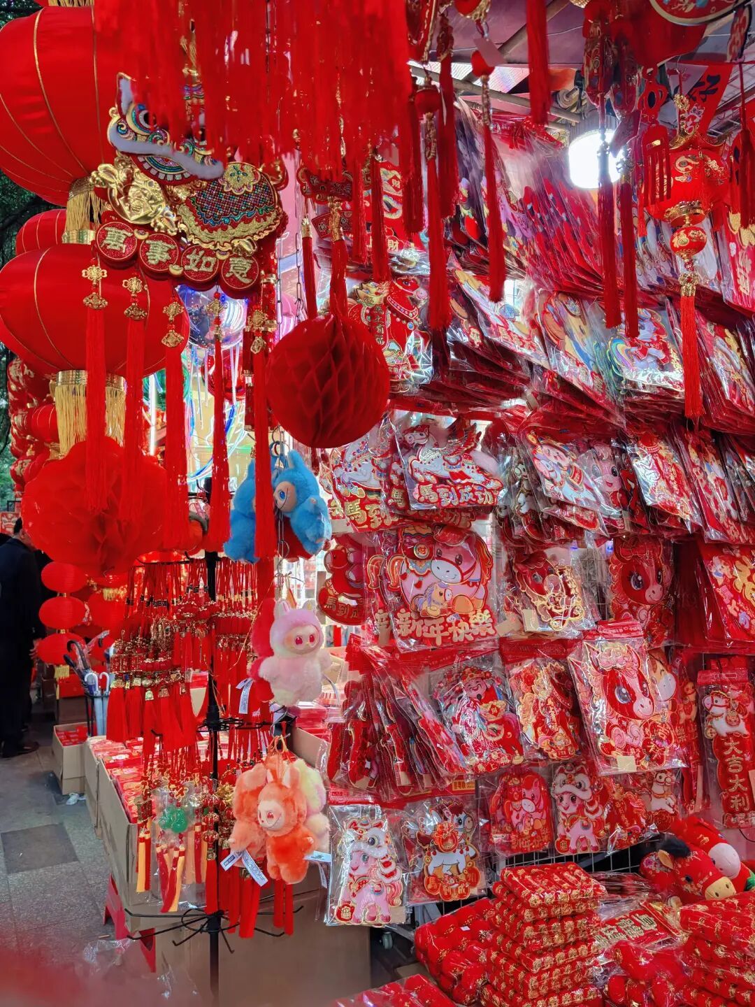 想过年前置办一下年货,又想沾沾地道老广“红运当头”的喜气?一德路B口出来这条街,红到睁不开眼!整条街挂满灯笼、中国结、利是封、挥春……堆积如山。这里不算景点,而是全城的年货仓库,批发店里堆着如山高的坚果糖饼、瑶柱虾干,老板娘会热情塞给你一颗糖冬瓜:“试下啦,甜过初恋!”
