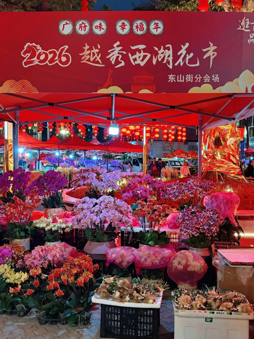 老广常说“行花街,转大运”,而东山口的龟岗花市少了大型花市的人潮,来逛的都是街坊邻里。你会看到阿伯拖着小车,精心挑选一盆寓意吉祥的年桔;阿姨则会拿起水仙头,跟老板仔细叮嘱:“要花箭多的,最好年三十晚上准时开花。”在这里,买花是件讲究事,寄托着对新年最具体的期盼。